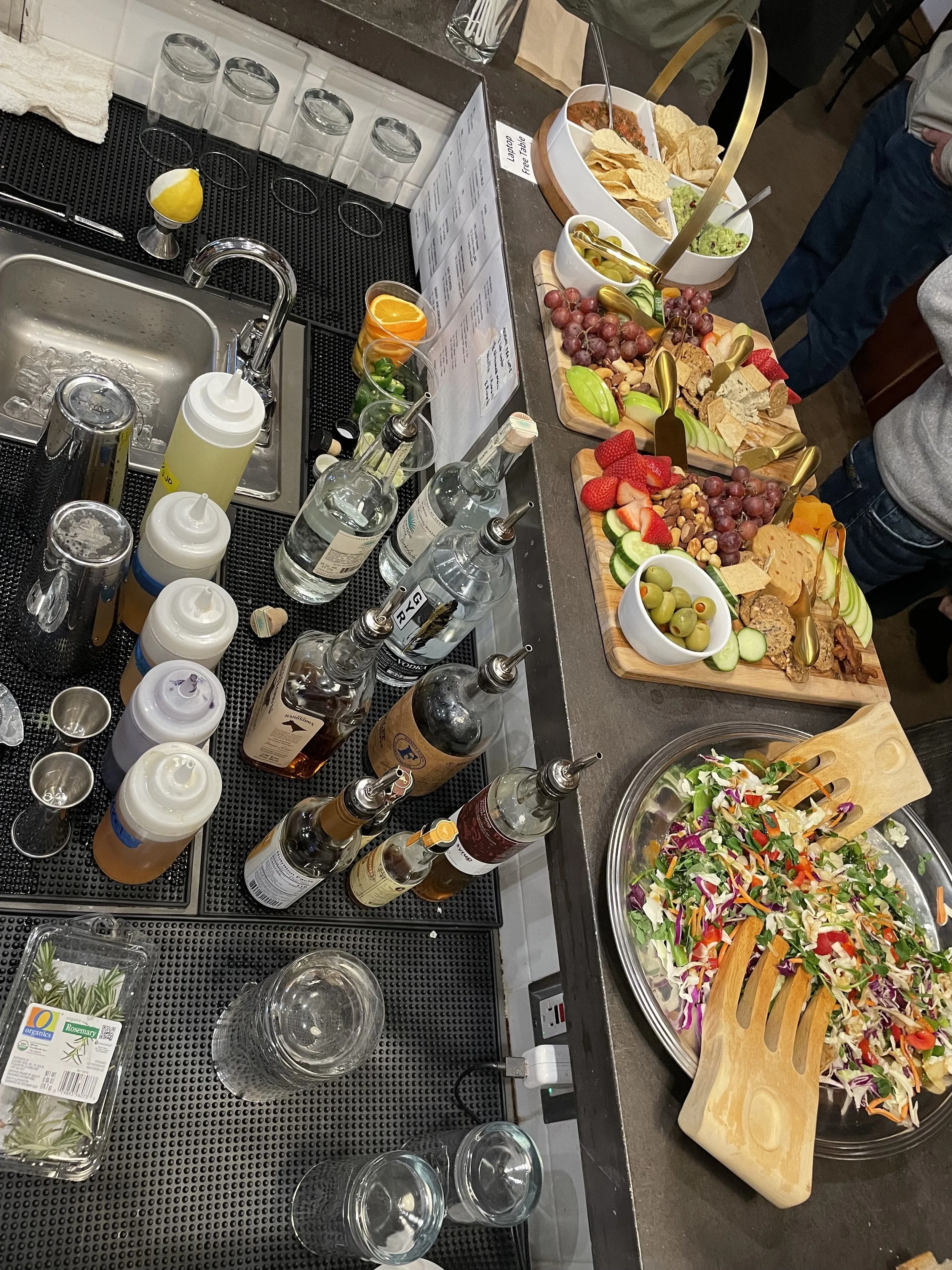 A standard event size of 30 guests enjoying a full food menu, beer, wine, and a dessert would hit the $1,500 minimum. Larger guest sizes typically exceed that $1,500 minimum.